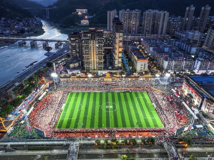 2025年貴州“村超”40強交叉賽在榕江“村超”足球場舉行。新華社記者楊文斌攝