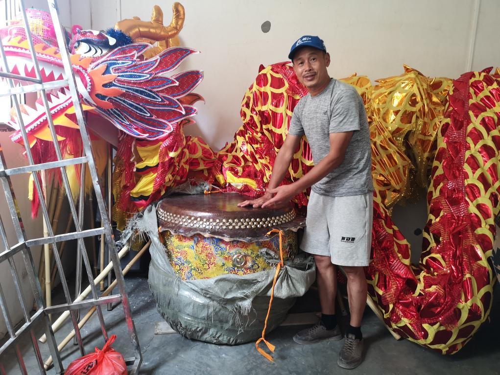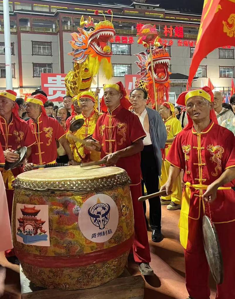 圖為7月26日楊明剛敲著大鼓參加“村超”感恩重啟大巡游。受訪者供圖