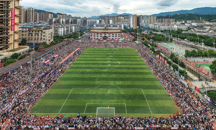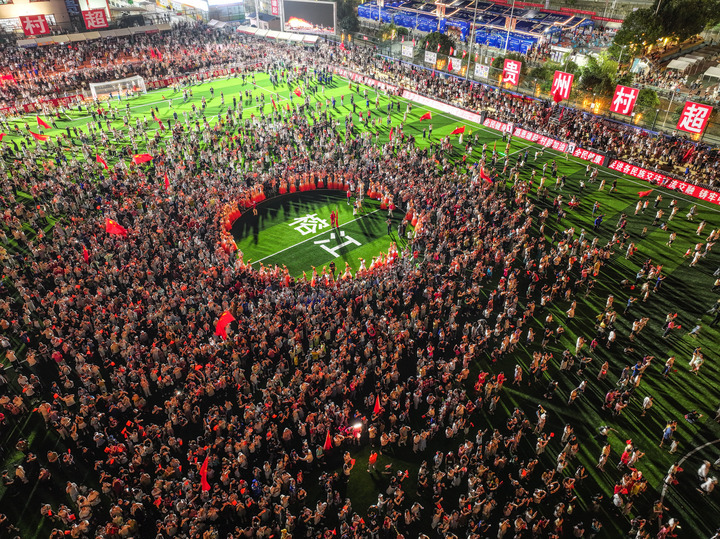2023年6月23日拍攝的“村超”足球賽現場(無人機照片)。新華社記者楊文斌攝