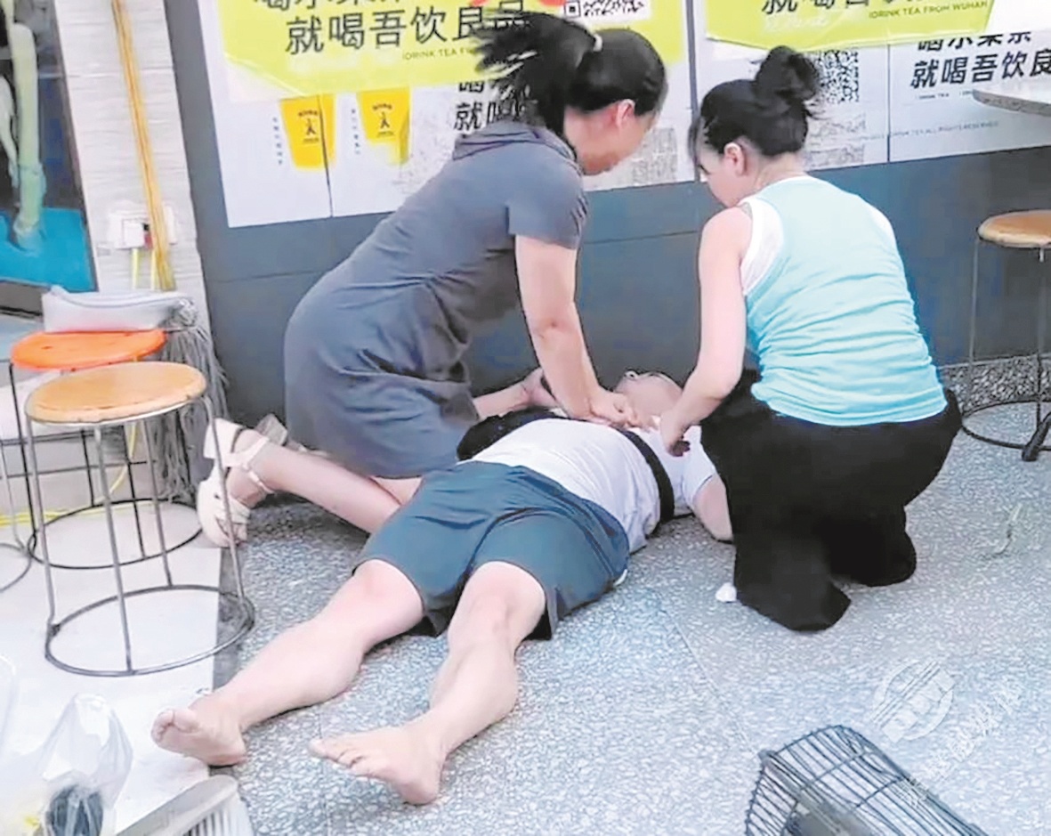 “我開始以為是我起身時不小心碰到了他,再一看,不對,他四肢攣縮并微微抽動。”駱燚說。職業敏感讓她意識到該男子可能是突發疾病,立即上前查看,“當時他嘴唇發紺,嘆氣樣呼吸,隨后一動不動。我一摸他的大動脈,沒有搏動,說明他的心跳驟停,情況非常危險,必須抓緊‘黃金四分鐘’展開急救。”