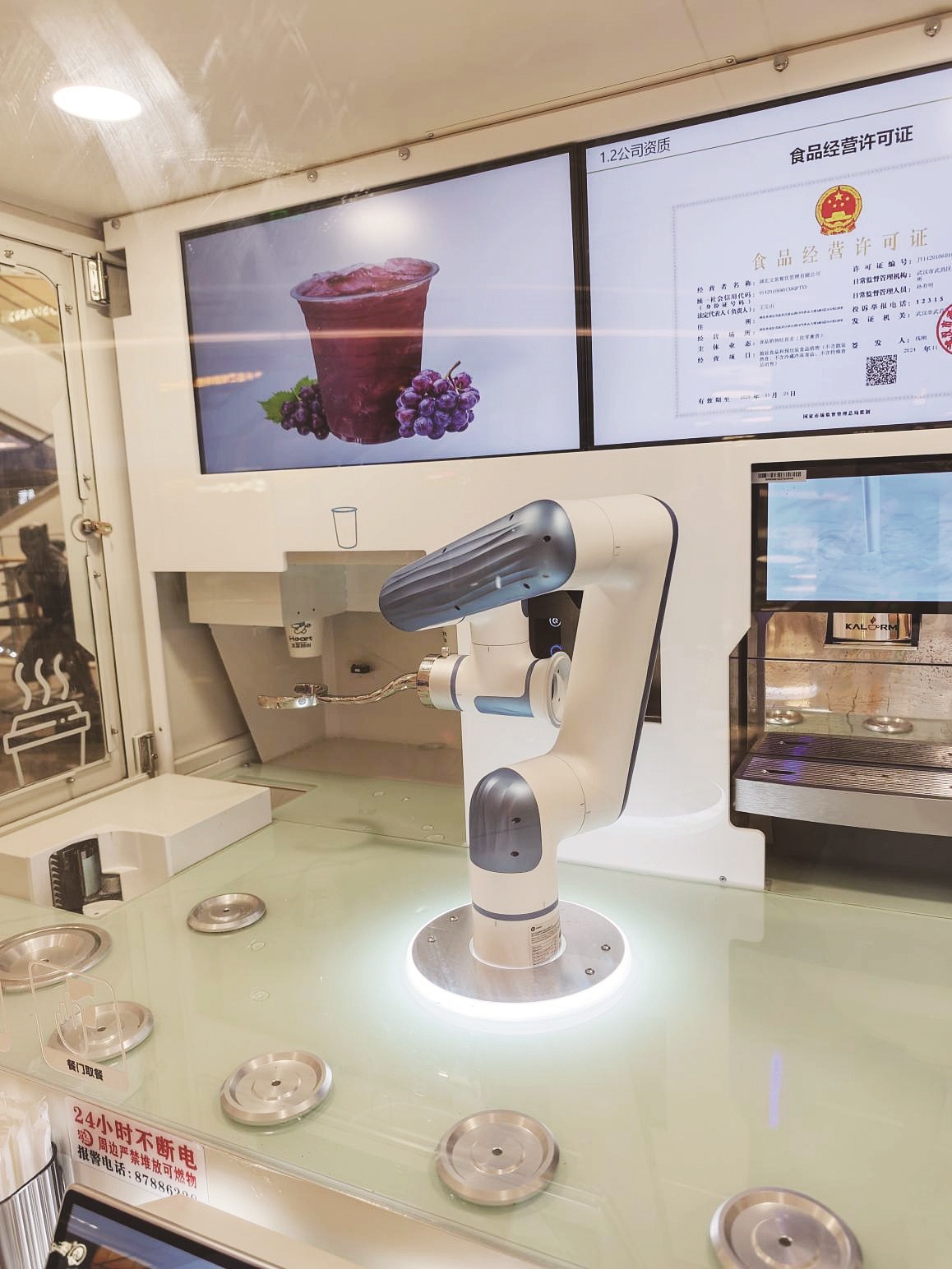 這是湖北文旅餐飲管理有限公司引入的靈犀機器人咖啡屋。該公司副總經理尉永剛介紹,自今年6月在武漢投放首批機器人咖啡屋以來,目前全市已有9臺機器,涵蓋機場、商場、寫字樓等場景。其中,在武商夢時代的單臺機器,月營業額突破萬元。