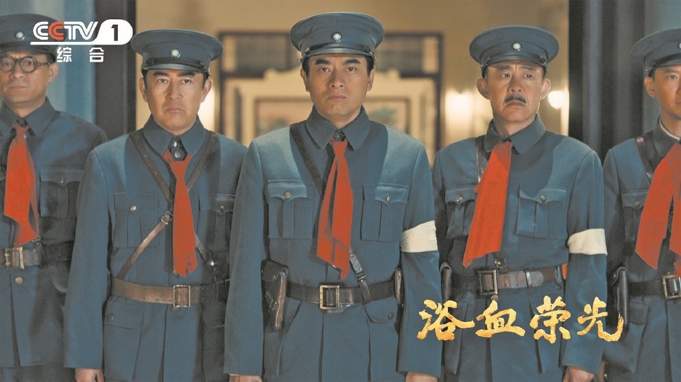 《浴血榮光》從歷史中鉤沉細節,還原了中國共產黨人發動南昌起義的過程。“‘河山統一’的口令在片場很振奮人心!”那場戲至今在陳龍心頭翻滾。進組前,他見過《八一南昌起義》的油畫,看過湯曉丹導演的上影廠經典影片《南昌起義》,對周恩來振臂朝天連發三槍的場景,毫不陌生。但當《浴血榮光》劇組正式拍攝那場戲,周恩來從門洞里走出,身邊將星聚首,面前、身后都堅定地站著無數人,打響武裝反抗國民黨反動派的第一槍,“那種無以言表的激動、心靈的震撼,可能只有我自己能真切體會到”。