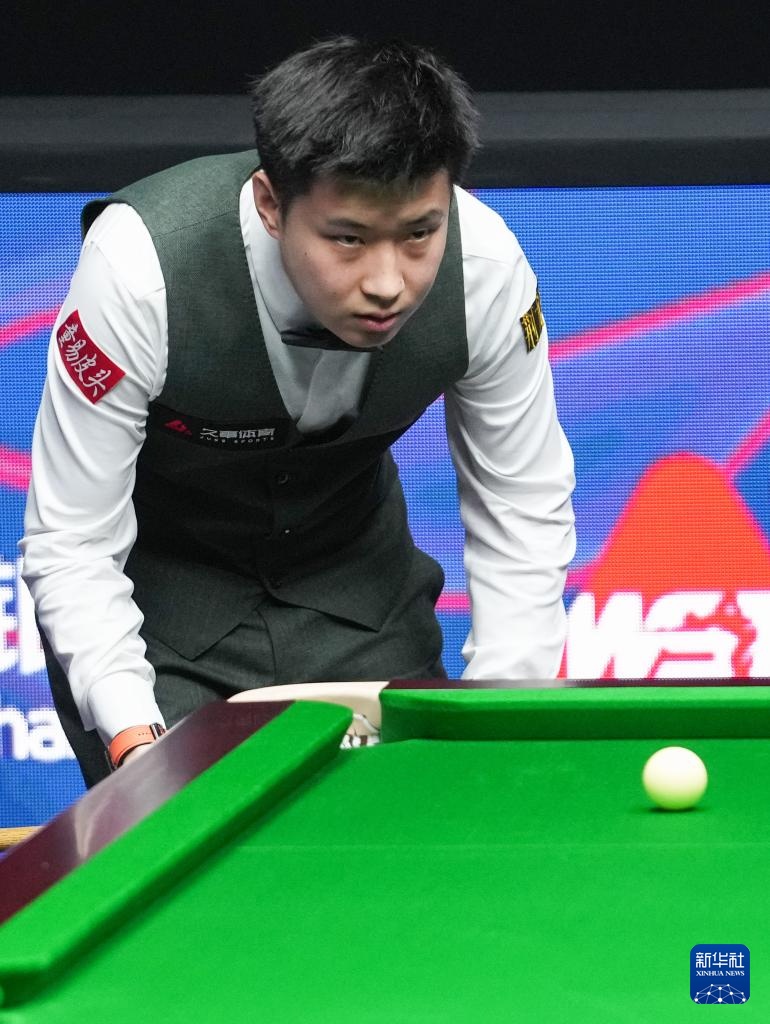 7月31日,趙心童在比賽中擊球。