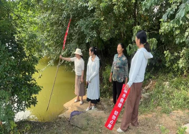 荊門市1.5萬余名各級婦聯執委、婦聯干部、巾幗志愿者化身“安全衛士”,聯合相關部門,在1881處重點危險水域及人流集中位置設置警示牌3300個、懸掛防溺水橫幅2204條。在大悟縣城關鎮七里沖村,婦聯執委積極配合當地派出所、村(社區)“兩委”進行防溺水巡邏。