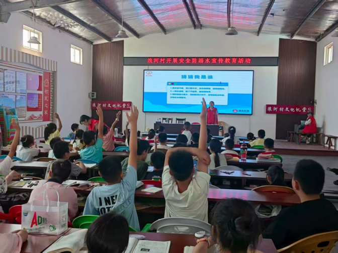 在湖北省2025暑期兒童關愛服務活動啟動儀式上,奧運冠軍肖海亮現場開展防溺水知識互動教學,孩子們聽得津津有味。