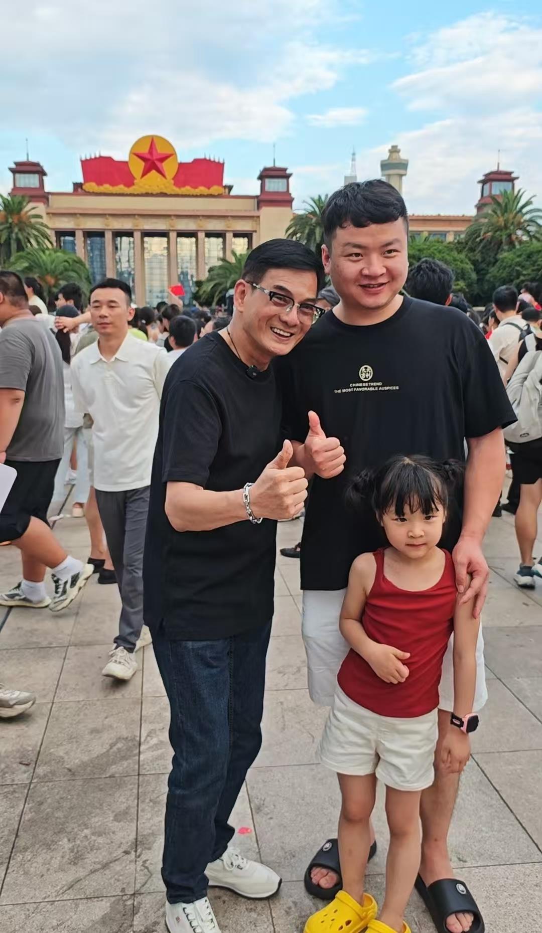 升旗儀式結束后,廣場上人們的熱情依然高漲,紛紛在國旗下合影留念,記錄下這難忘的瞬間。極目新聞記者在現場還看到了演員李國麟(鳩摩智扮演者)的身影。他被不少熱情的粉絲認出,欣然與大家合影互動。