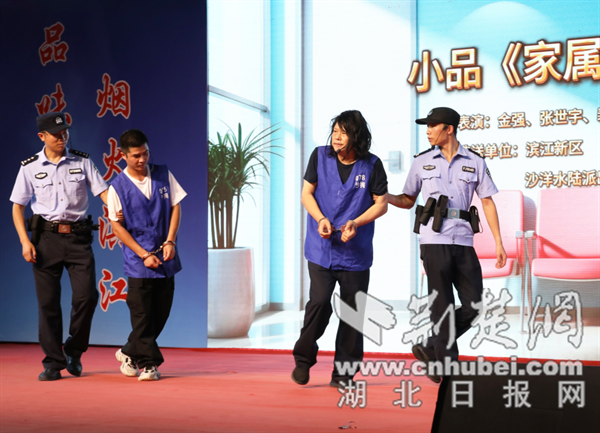 沙洋水陸派出所民警在社區演繹反詐禁毒小品。通訊員供圖