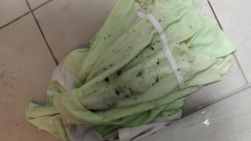 另一位網友表示,她一家三口的泳衣全部沾了油,用洗衣液、肥皂都洗不掉,最后用卸妝液洗才洗去一點點,只能全部扔了。