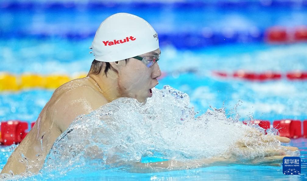 當日,2025年世界游泳錦標賽游泳男子200米蛙泳半決賽在新加坡舉行。