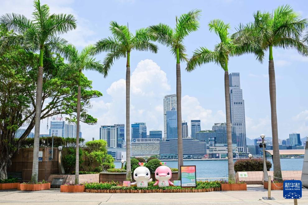 這是8月1日在香港金紫荊廣場拍攝的第十五屆全國運動會吉祥物。