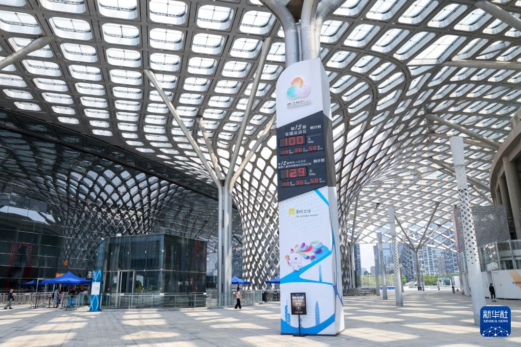 這是8月1日在深圳灣體育中心拍攝的第十五屆全國運動會倒計時牌。