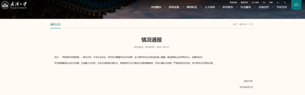 近日,“楊某某訴肖某某案”一審判決后,引發(fā)社會關(guān)注。學(xué)校充分尊重司法判決結(jié)果,全力維護(hù)學(xué)生合法權(quán)益和身心健康,真誠感謝社會各界的關(guān)心、監(jiān)督和批評。