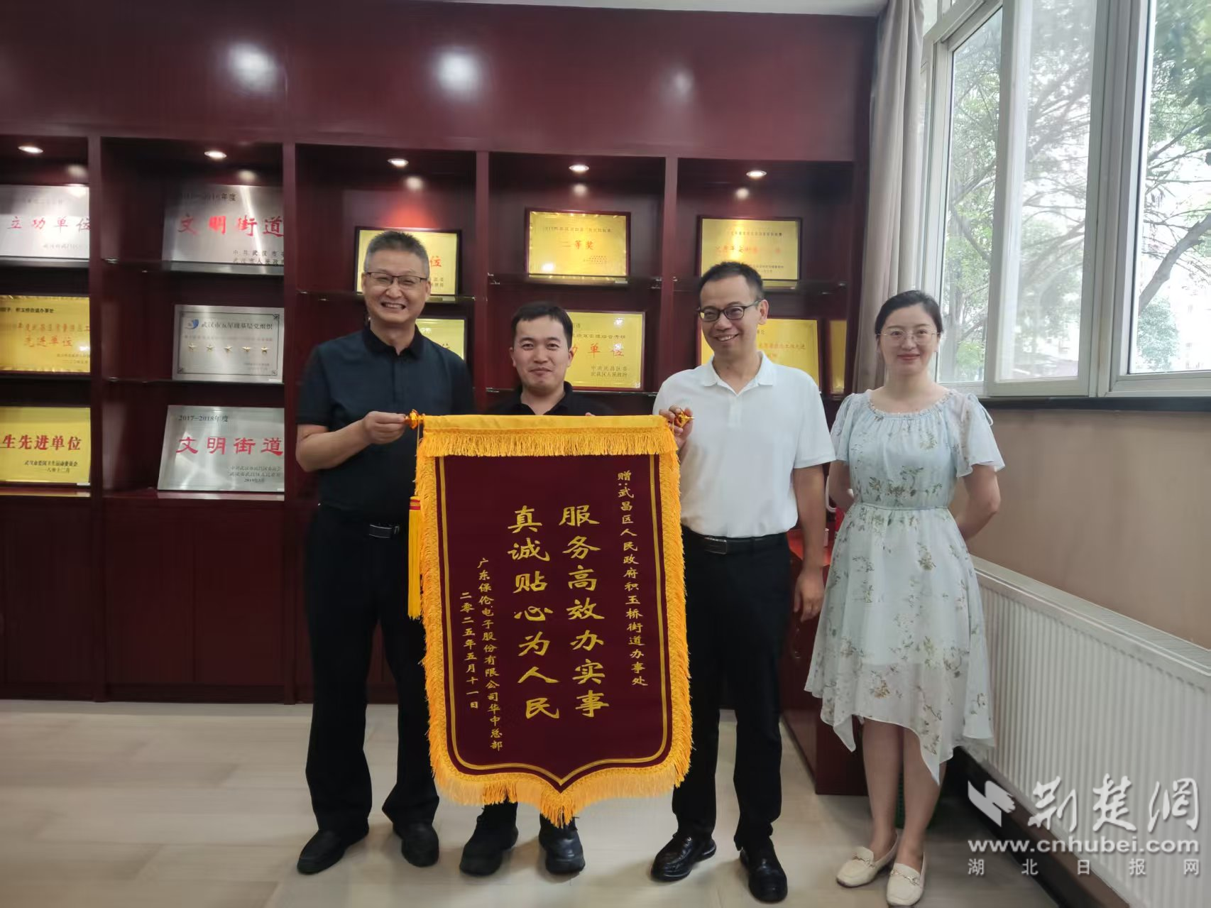 保倫電子華中總部向積玉橋街道贈予錦旗。 通訊員供圖