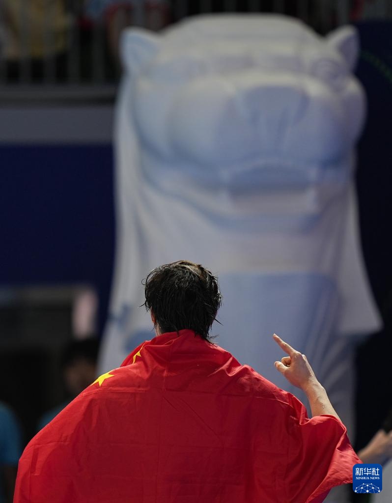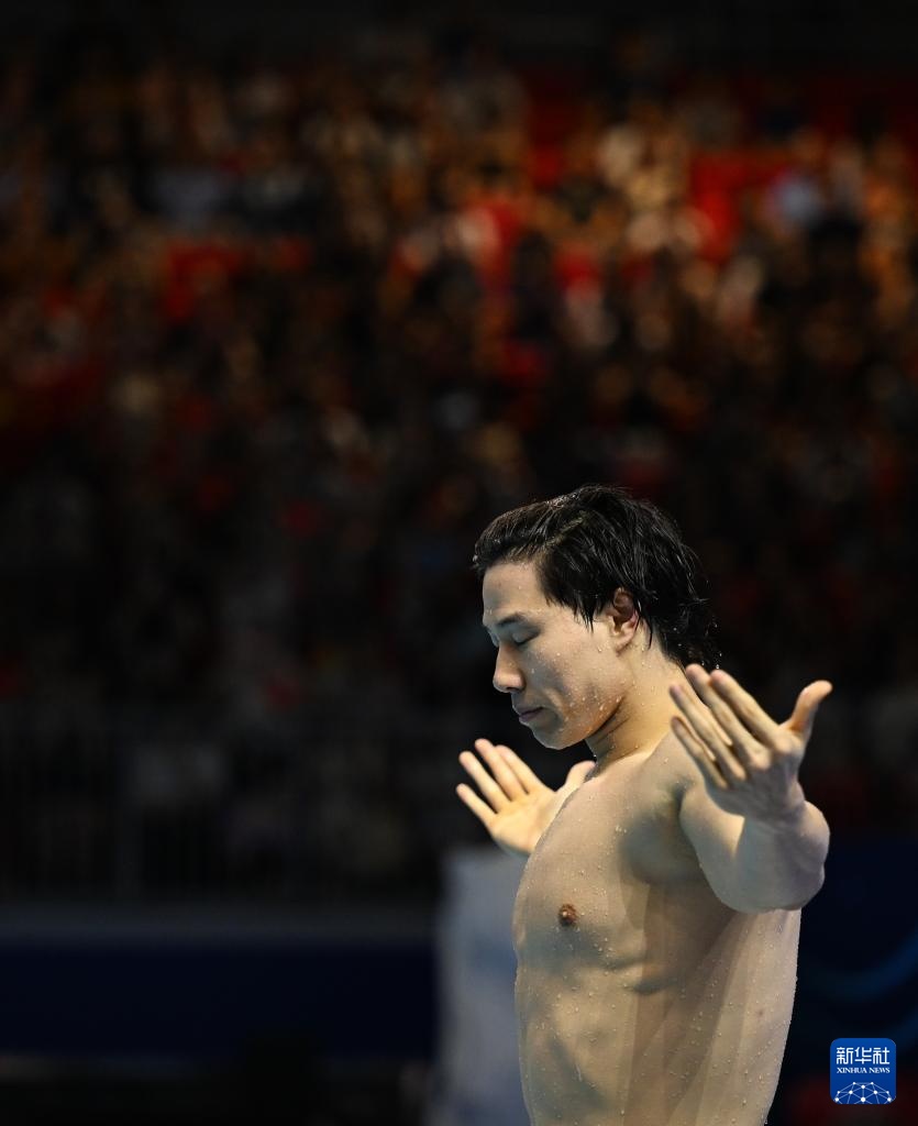 8月1日,中國選手覃海洋奪冠后慶祝。