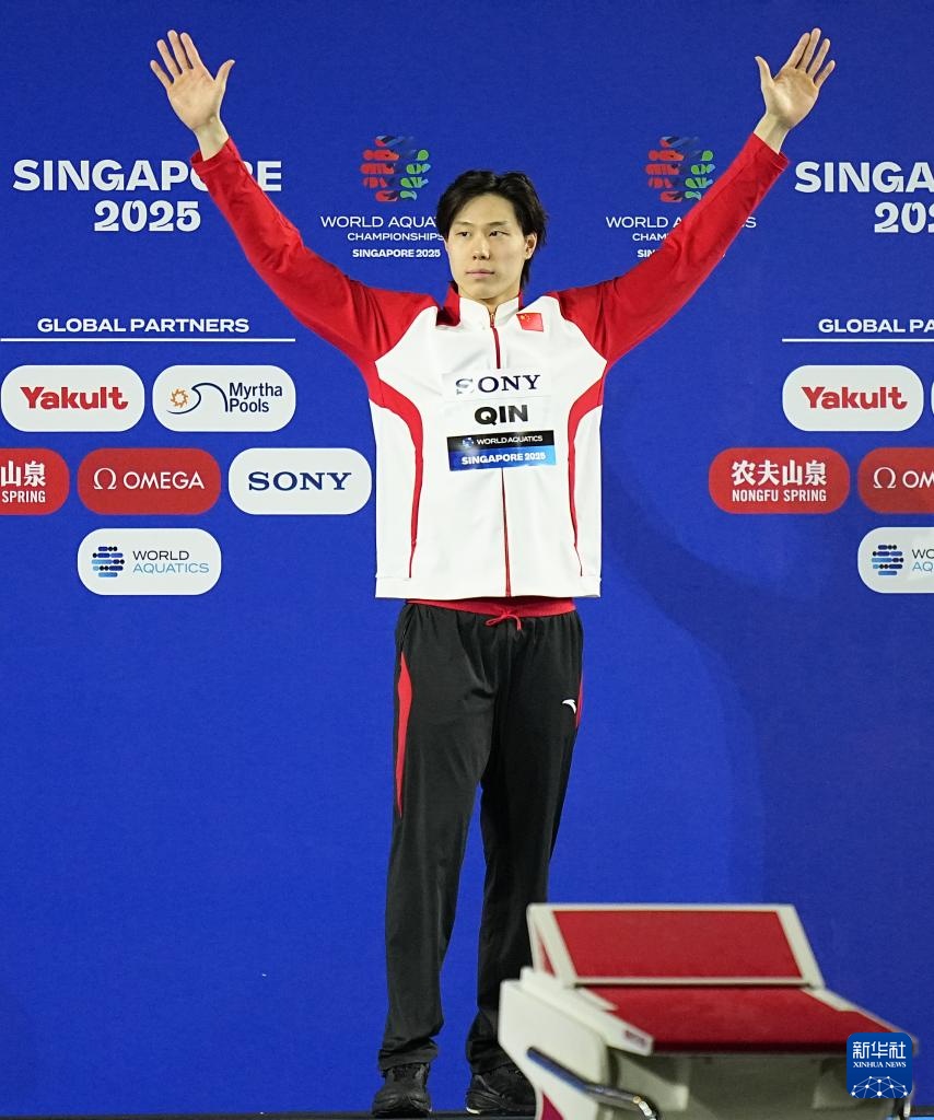 當日,在新加坡舉行的2025年世界游泳錦標賽游泳男子200米蛙泳決賽中,中國選手覃海洋奪冠。