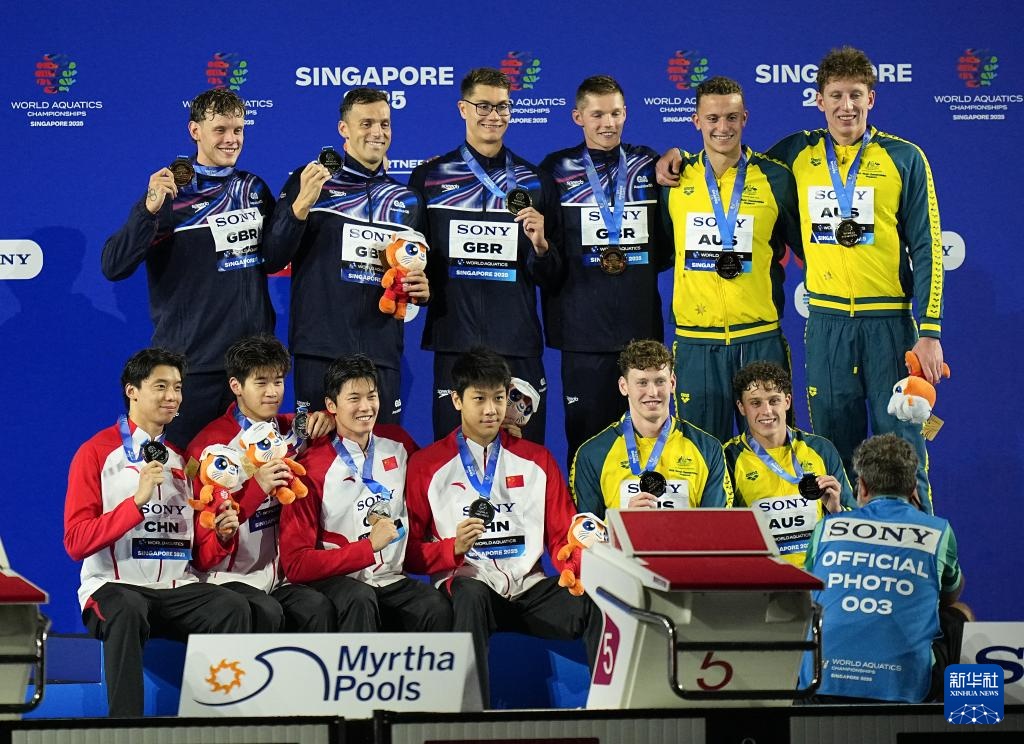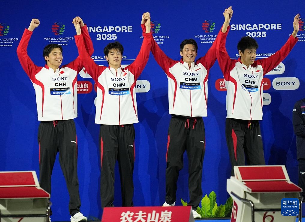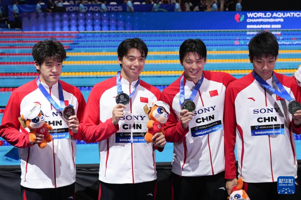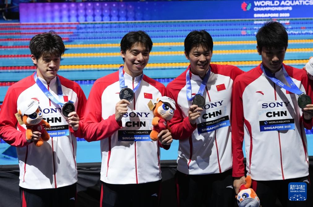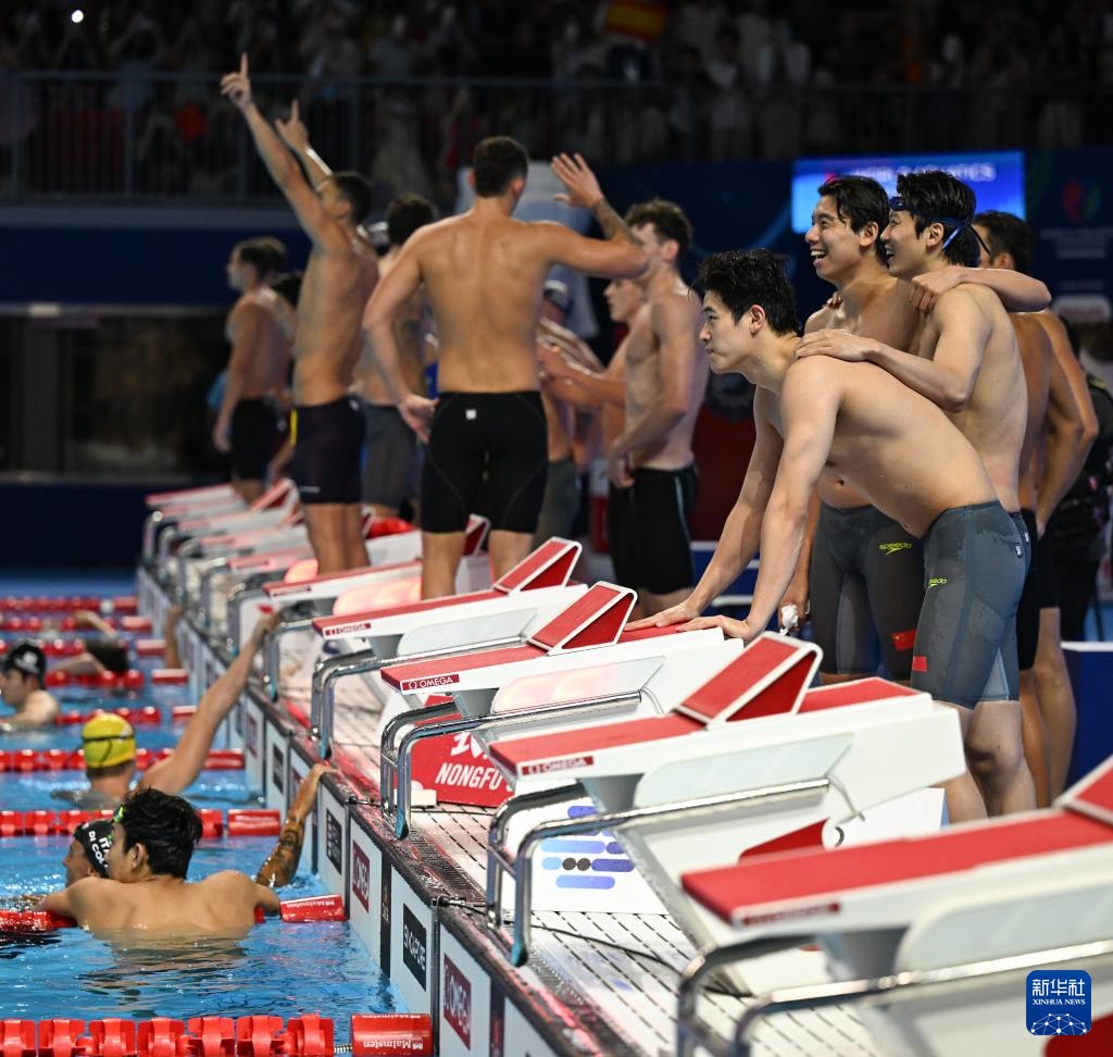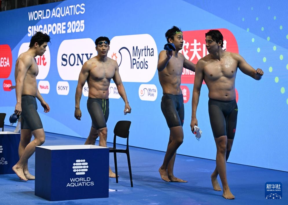 當(dāng)日,2025年世界游泳錦標(biāo)賽游泳男子4X200米自由泳接力決賽在新加坡舉行。