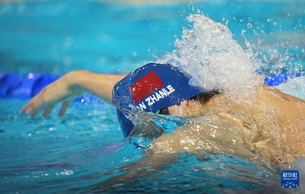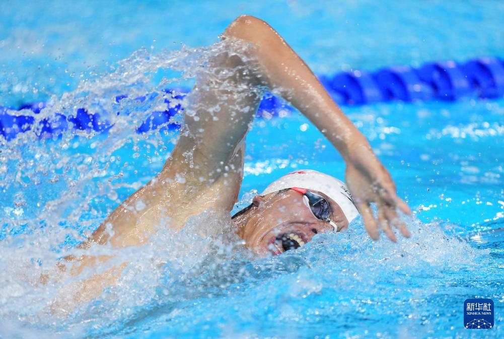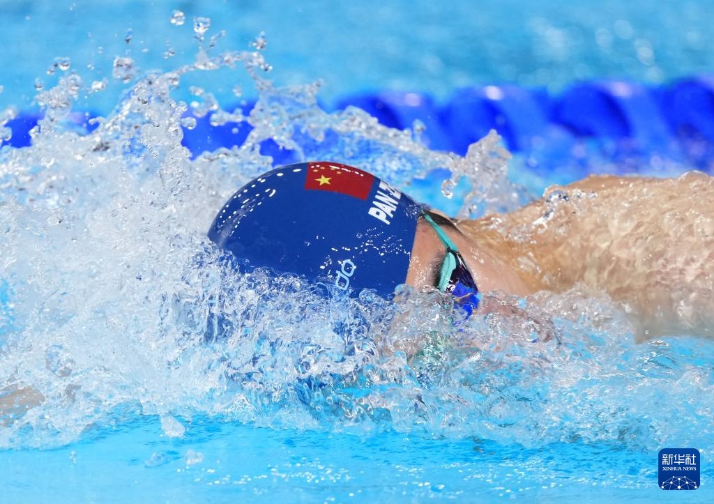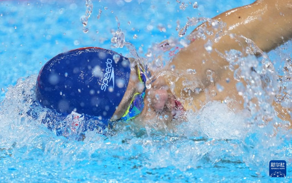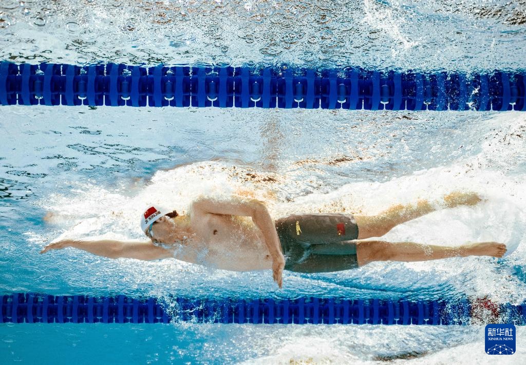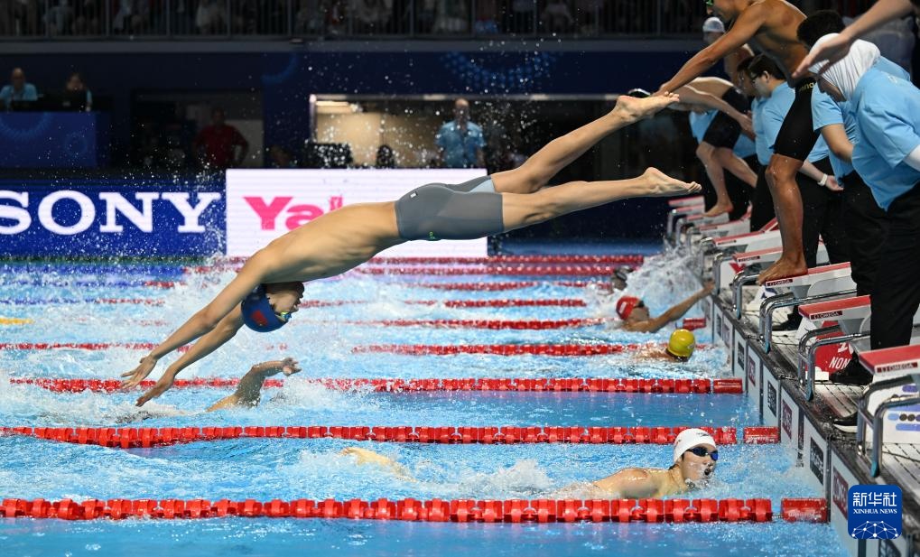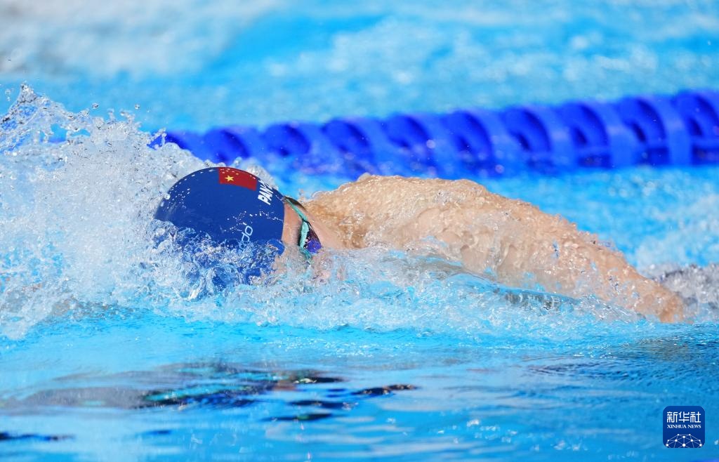 8月1日,中國隊(duì)選手潘展樂在比賽中。最終,中國隊(duì)獲得亞軍。