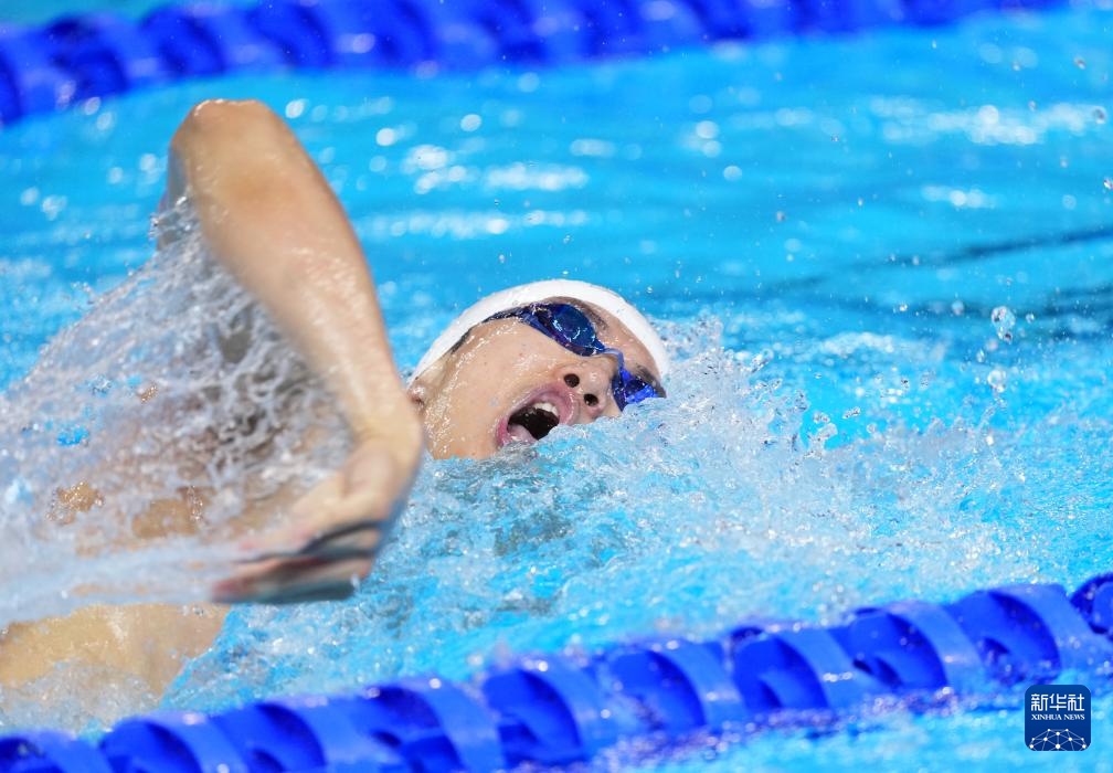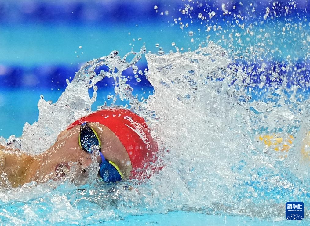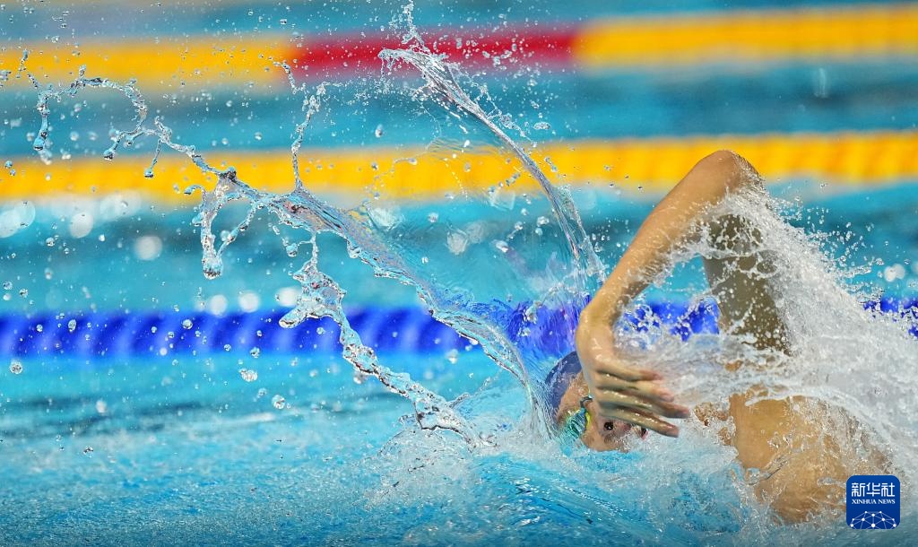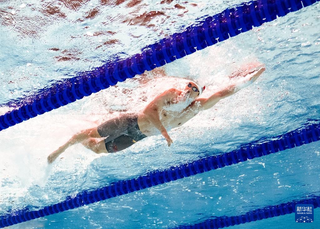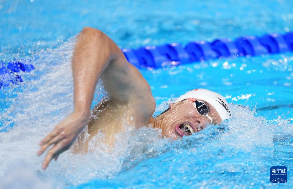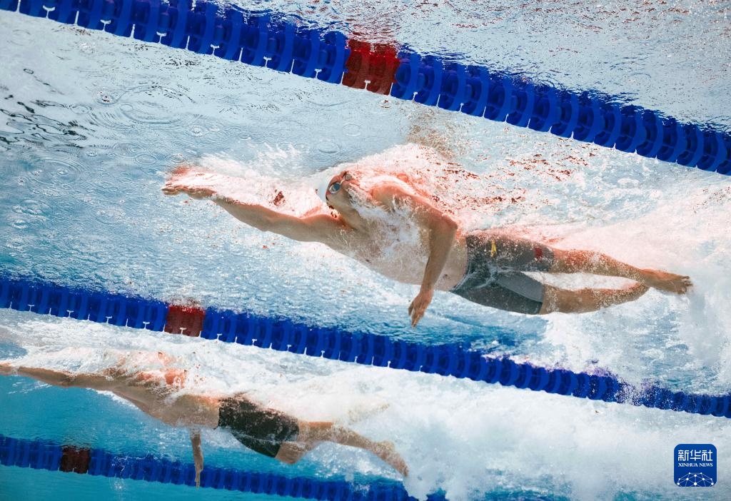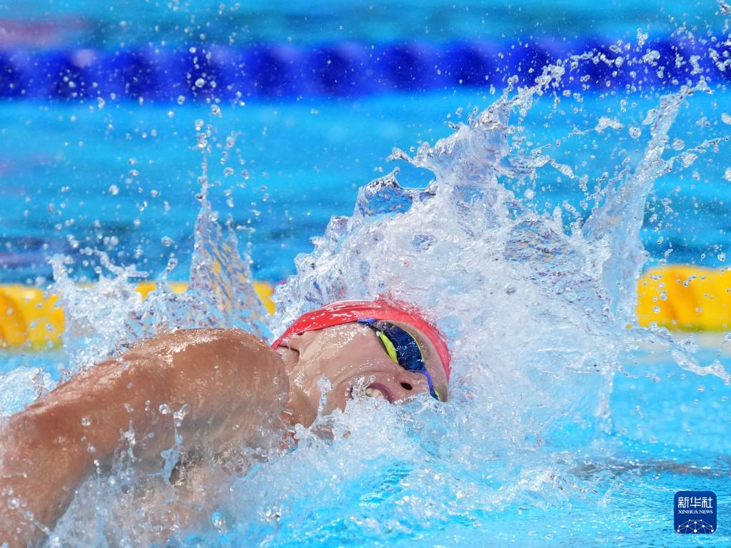 8月1日,中國隊(duì)選手潘展樂在比賽中。最終,中國隊(duì)獲得亞軍。