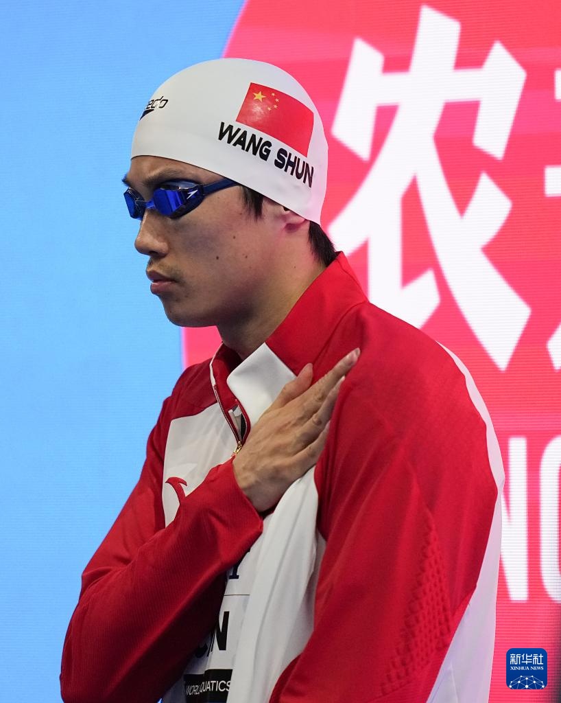 8月1日,中國隊(duì)第三棒選手汪順在比賽中。最終由季新杰、潘展樂、汪順、張展碩組成的中國隊(duì)獲得亞軍。