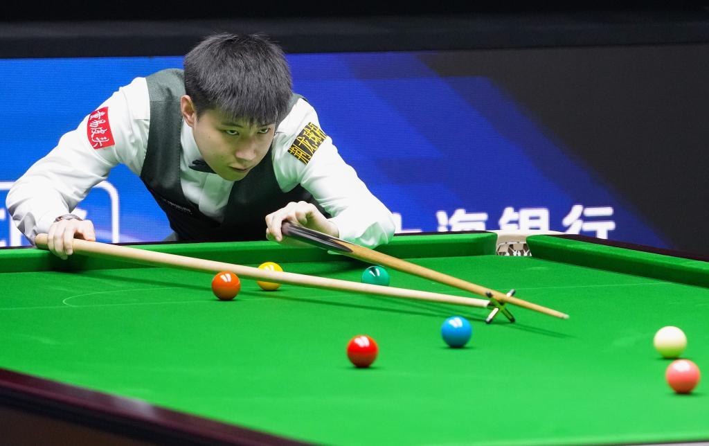 8月2日,趙心童在比賽中擊球。新華社記者 丁汀 攝