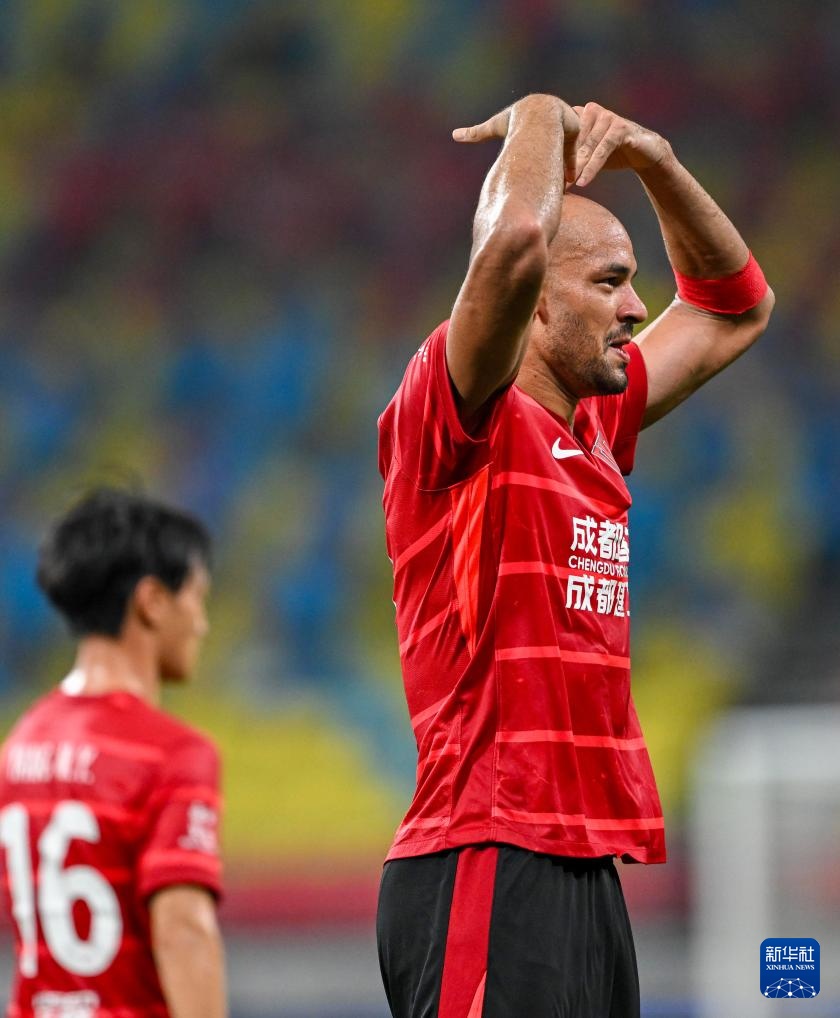 8月2日,成都蓉城隊球員費利佩慶賀進球。