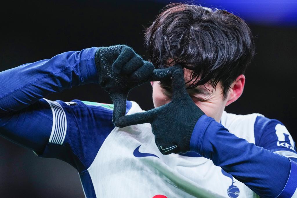 熱刺隊球員孫興慜在進球后慶祝(資料圖)。新華社/美聯