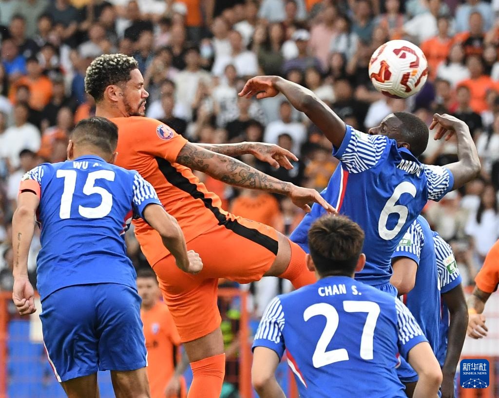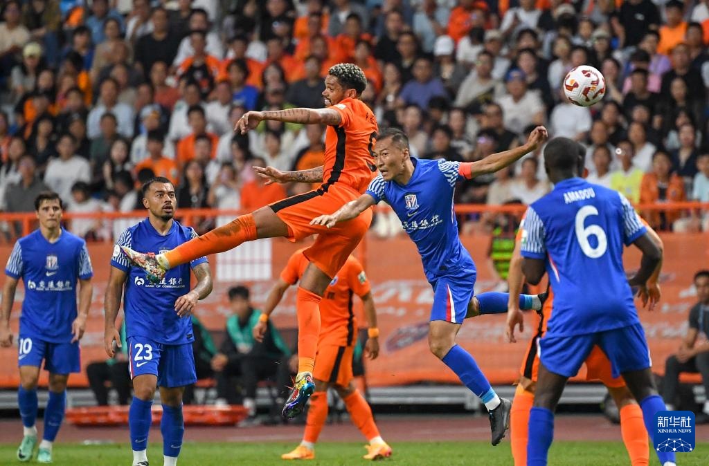 8月2日,上海申花隊(duì)球員安德烈·路易斯(上左)在比賽中爭(zhēng)頂。