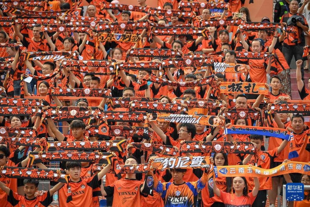 8月2日,云南玉昆隊(duì)球迷為球隊(duì)加油。