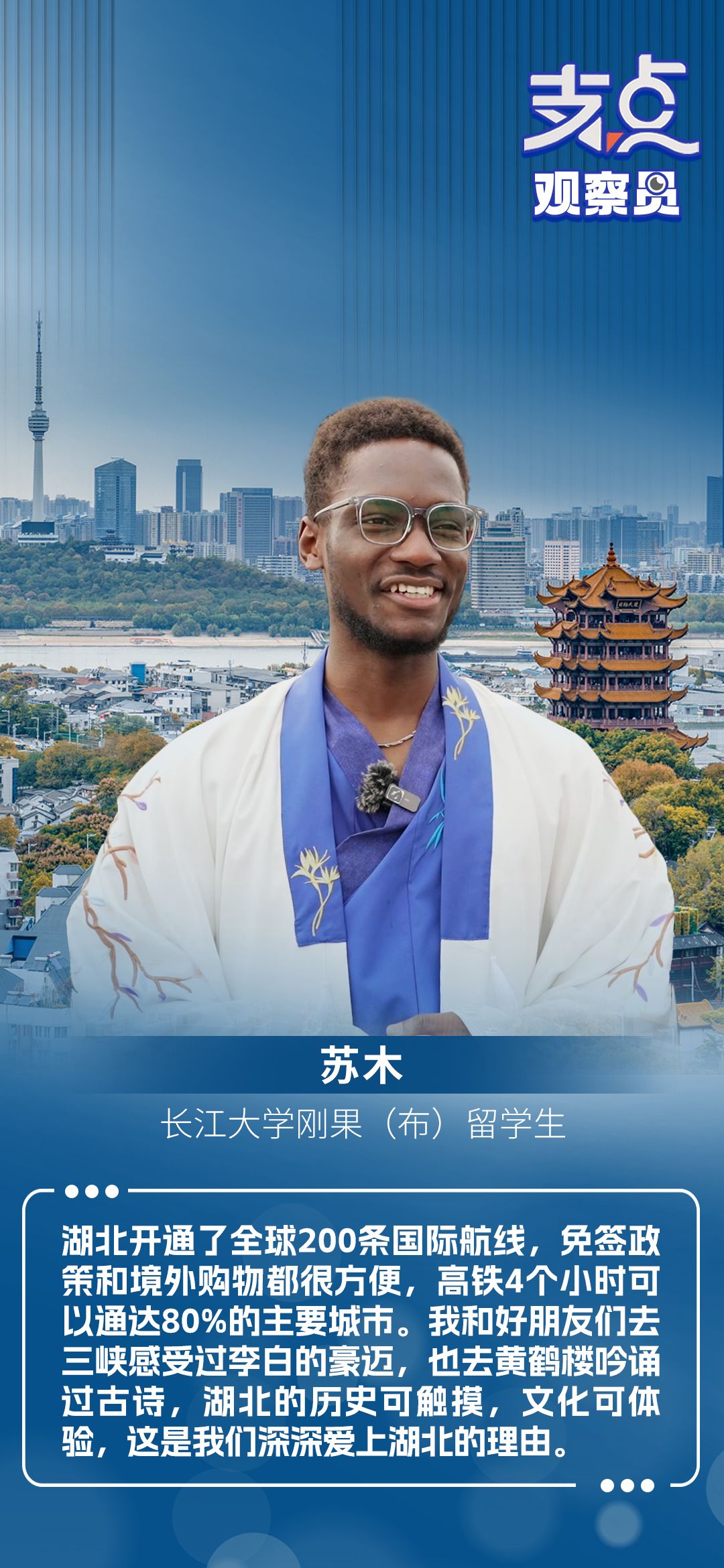湖北開通了全球200條國際航線,免簽政策和境外購物都很方便,高鐵4個小時可以通達80%的主要城市。我和好朋友們去三峽感受過李白的豪邁,也去黃鶴樓吟誦過古詩,湖北的歷史可觸摸,文化可體驗,這是我們深深愛上湖北的理由。