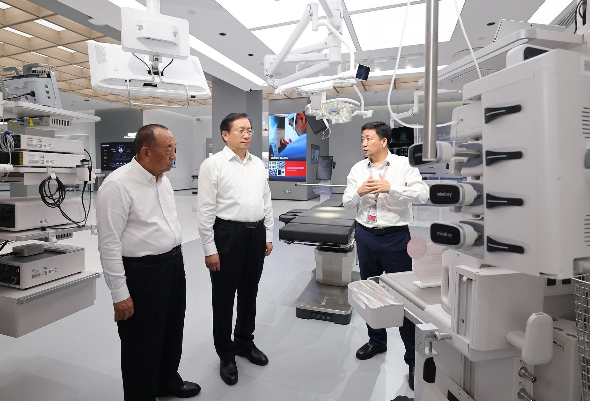 武漢邁瑞生物醫(yī)療科技有限公司是邁瑞醫(yī)療全資子公司,已建成邁瑞全球第二大總部基地。王忠林走進(jìn)企業(yè)展示大廳,察看企業(yè)研發(fā)的高端醫(yī)療裝備及應(yīng)用場景,認(rèn)真聽取醫(yī)工交叉融合發(fā)展、醫(yī)療技術(shù)人才培養(yǎng)等情況介紹,對企業(yè)持續(xù)加大研發(fā)投入、不斷提升創(chuàng)新能力、推動(dòng)高水平科技自立自強(qiáng)予以肯定。希望企業(yè)發(fā)揮龍頭帶動(dòng)作用,依托湖北良好科教、醫(yī)療、產(chǎn)業(yè)基礎(chǔ),加強(qiáng)醫(yī)學(xué)與現(xiàn)代工程技術(shù)交叉融合,打通企業(yè)、醫(yī)院、科研院所創(chuàng)新轉(zhuǎn)化鏈條,推動(dòng)我省高端醫(yī)療裝備產(chǎn)業(yè)加快發(fā)展。