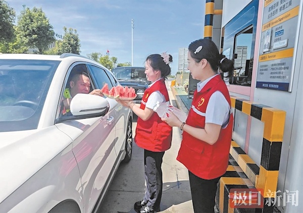 志愿者在收費站為司乘送清涼 通訊員供圖