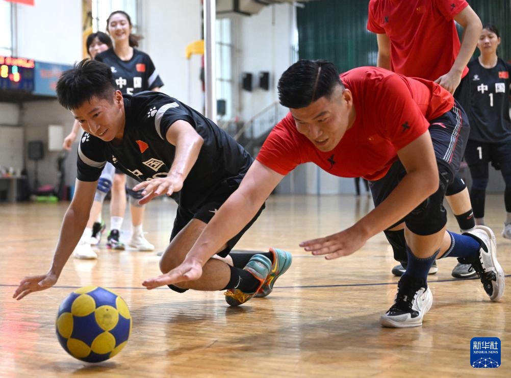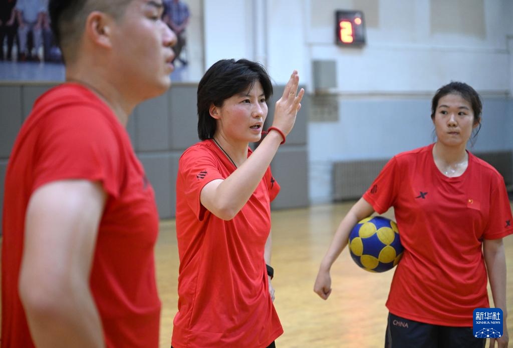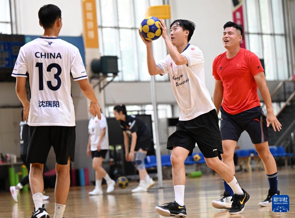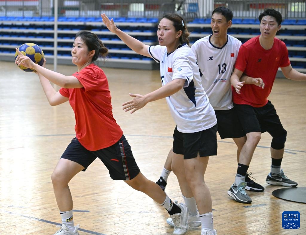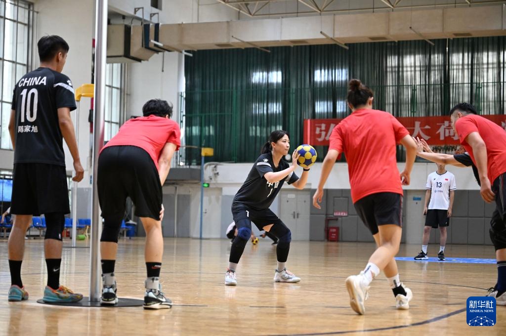 中國(guó)國(guó)家荷球隊(duì)球員在鄭州大學(xué)集訓(xùn)時(shí)進(jìn)行分組對(duì)抗練習(xí)(7月10日攝)。新華社記者 李嘉南 攝
