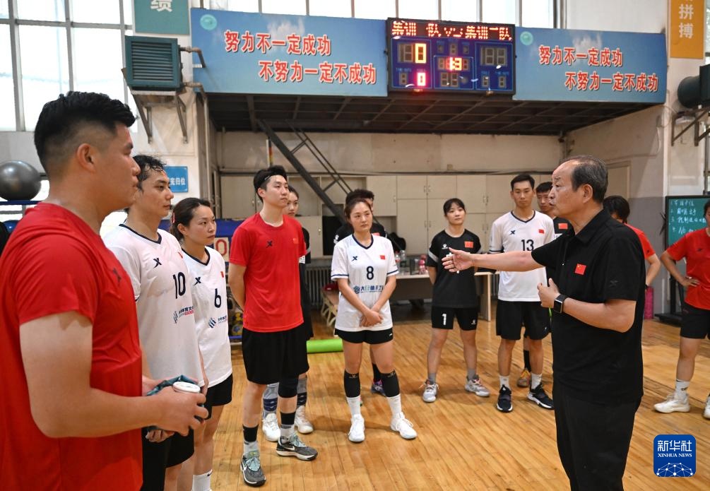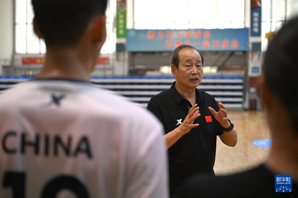 中國(guó)國(guó)家荷球隊(duì)主教練馬襄城總結(jié)當(dāng)日集訓(xùn)(7月10日攝)。新華社記者 李嘉南 攝