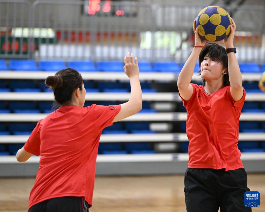 中國(guó)國(guó)家荷球隊(duì)球員在鄭州大學(xué)集訓(xùn)時(shí)進(jìn)行投籃練習(xí)(7月10日攝)。新華社記者 李嘉南 攝