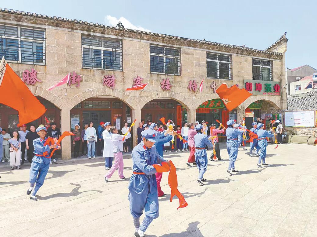 黃岡創新“小劇+”模式,將《長江邊的婚禮》《大別山上七枝花》等14部紅色小劇植入景區、社區,在多彩旅游路、景區上演900余場,服務觀眾超50萬人次;麻城龜峰山的“村K大舞臺”,將《十送紅軍》改編成互動舞蹈,游客在游戲“搶糧食”中感受蘇區軍民魚水情;英山長征公園的《姐兒》小劇,把紅二十五軍戰士與當地姑娘的革命情誼搬上舞臺,演出結束后,觀眾可參與手工編制草鞋,體驗紅軍長征的艱辛。