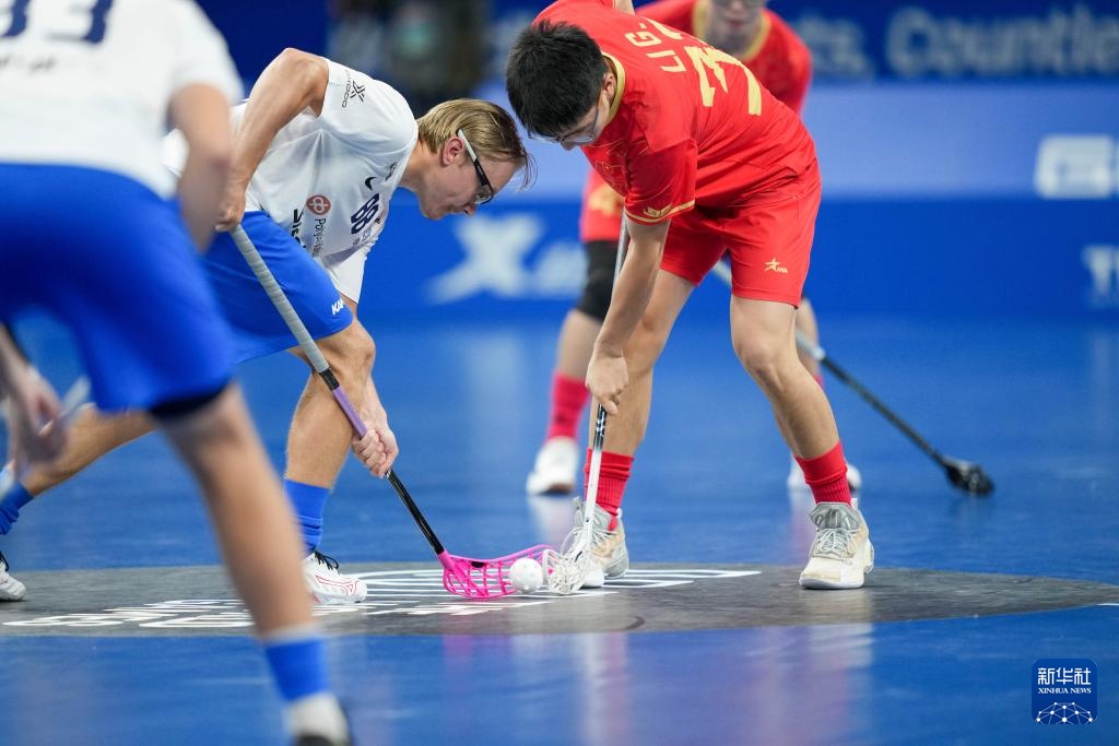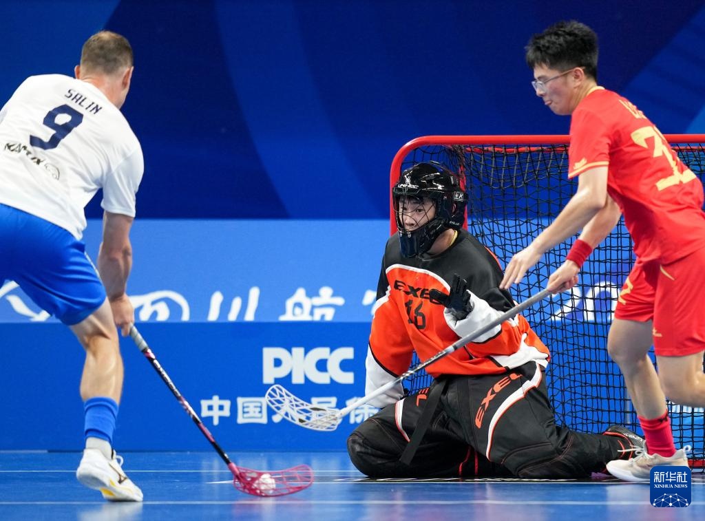 當日,在成都世運會軟式曲棍球男子B組預賽中,中國隊對陣芬蘭隊。