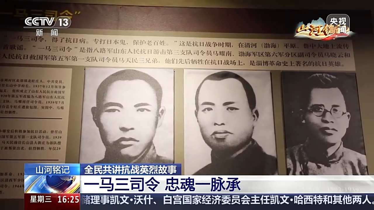 總臺央視記者 張仲魯:我現在是在淄博市烈士陵園,馬耀南、馬曉云、馬天民三位烈士的陵墓在這里守望著他們所熱愛的土地和人民。從1937年,馬耀南投身抗日,到1944年馬曉云壯烈犧牲,7年間,三兄弟毀家紓難,用滿門忠烈詮釋了什么是烈士之愛國也如家。青山埋忠骨,山河永銘記。愿今日之盛世安寧,可以告慰所有為了民族獨立和國家富強而奉獻的人們。