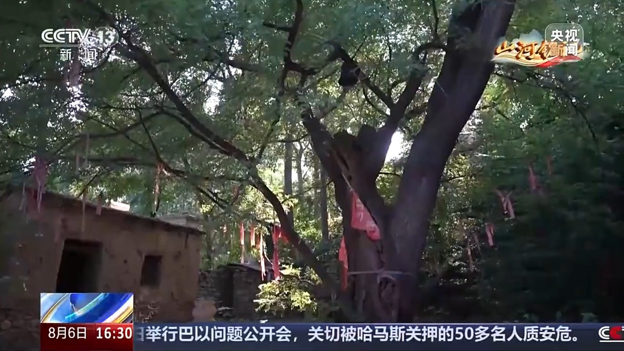 院內古樹樹冠碩大,枝葉茂密,籠罩著整個小院。槐樹的正中是一棵直挺挺的椿樹,兩樹渾然一體,緊密擁抱在一起,當地人稱為槐抱椿。抗日戰爭期間,老百姓為部隊籌糧籌款、掩護傷員、傳遞情報曾在樹下進行,可以說它是軍民魚水情的象征,也是軍民團結,生死與共的歷史見證。
