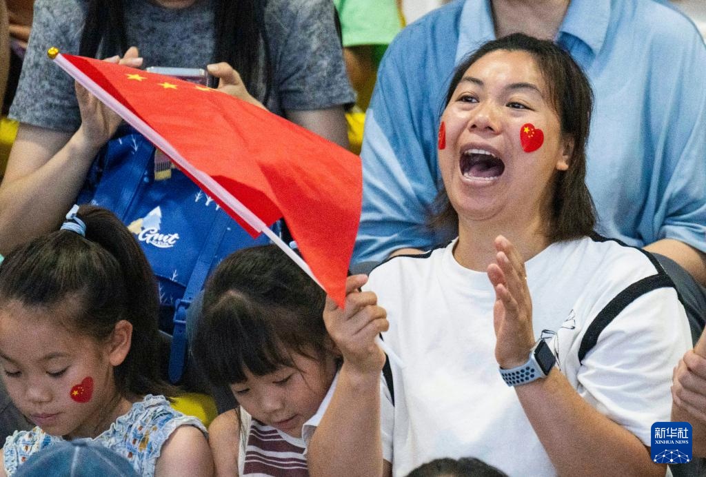 8月7日,觀眾為中國隊加油。