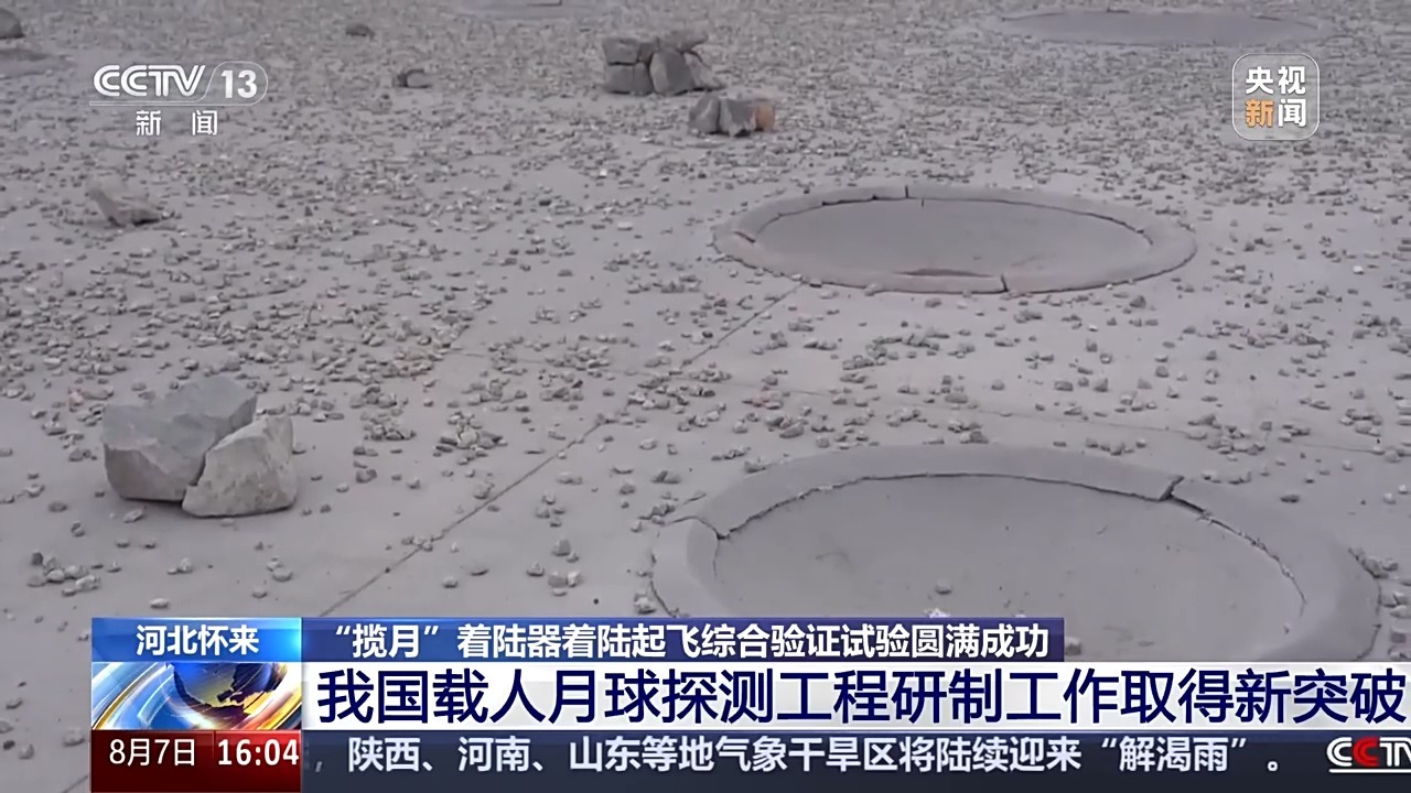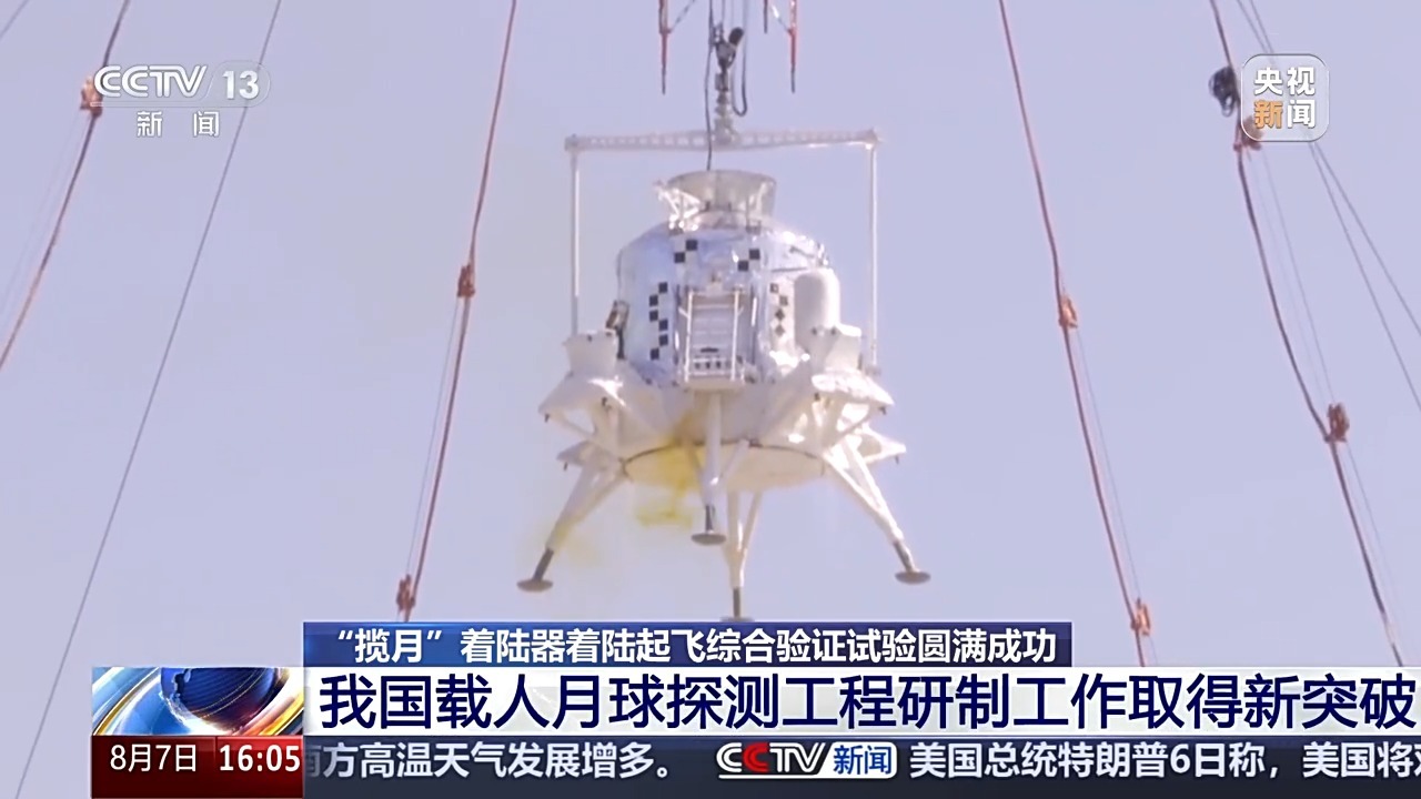 昨天(8月6日),攬月著陸器著陸起飛綜合驗證試驗在位于河北省懷來縣的地外天體著陸試驗場圓滿完成,標志著我國載人月球探測工程研制工作取得新的重要突破。