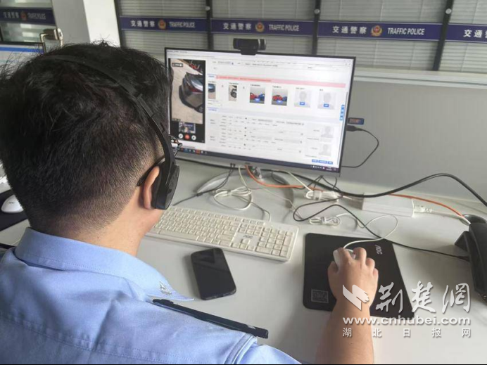 隨后,江夏區公安分局交通管理大隊在線事故違法處理中心民警徐忠輝和輔警陳庚立即接通了視頻通話,指導王先生將手機攝像頭對準車牌拍照,完成車輛識別。