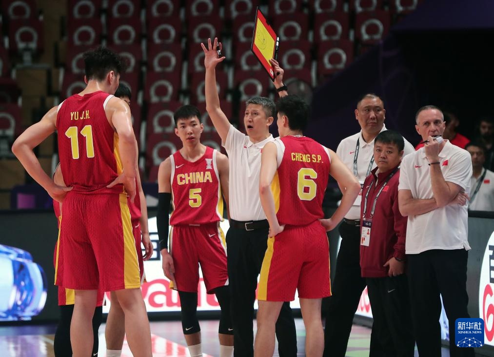 8月7日,中國隊主教練郭士強(左三)在比賽間隙指導球員。新華社記者 王東震 攝