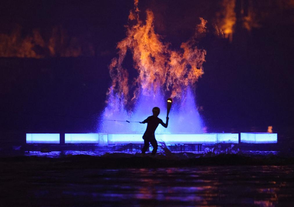 此次開幕式進(jìn)行了世運(yùn)會(huì)歷史上第一次主火炬點(diǎn)燃儀式,主創(chuàng)團(tuán)隊(duì)經(jīng)過多輪研討,采取火在噴泉中燃燒作為主要?jiǎng)?chuàng)意點(diǎn),通過精心設(shè)計(jì),讓天然氣向上穿過水柱,實(shí)現(xiàn)節(jié)能燃燒。