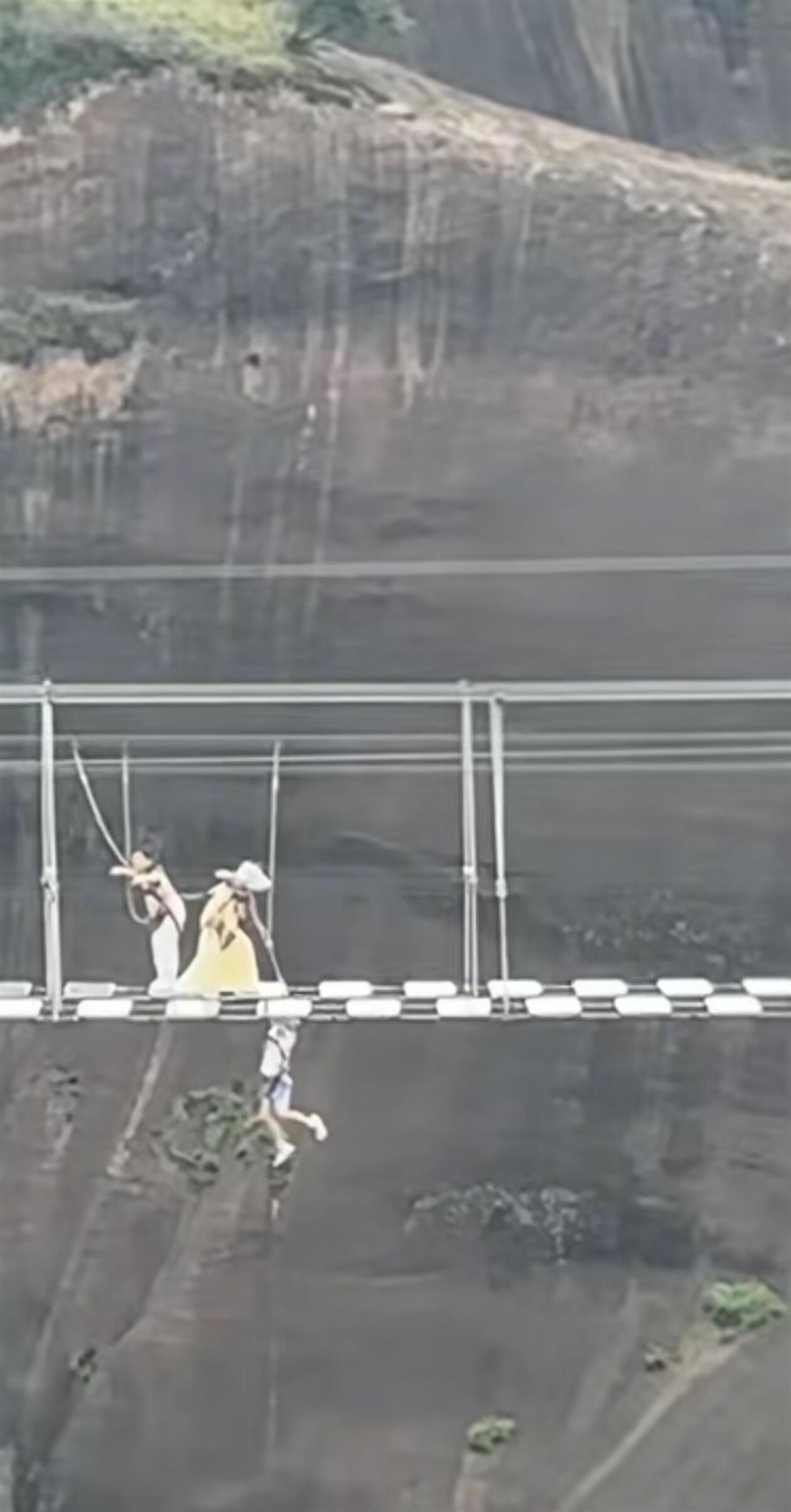 8月8日上午,一位游客告訴極目新聞記者,此事發生在8月7日下午3時30分許,當時他在橋附近的山坡上,事發的玻璃棧道橋為一個單獨收費的體驗項目,名叫步步驚心。當時突然聽到有人驚呼,他轉頭一看,一名戴著帽子的小男孩懸在半空中,下面全是石頭,當時的場景十分讓人揪心,萬幸的是小孩系著安全繩,工作人員很快趕到將小孩拽起來。