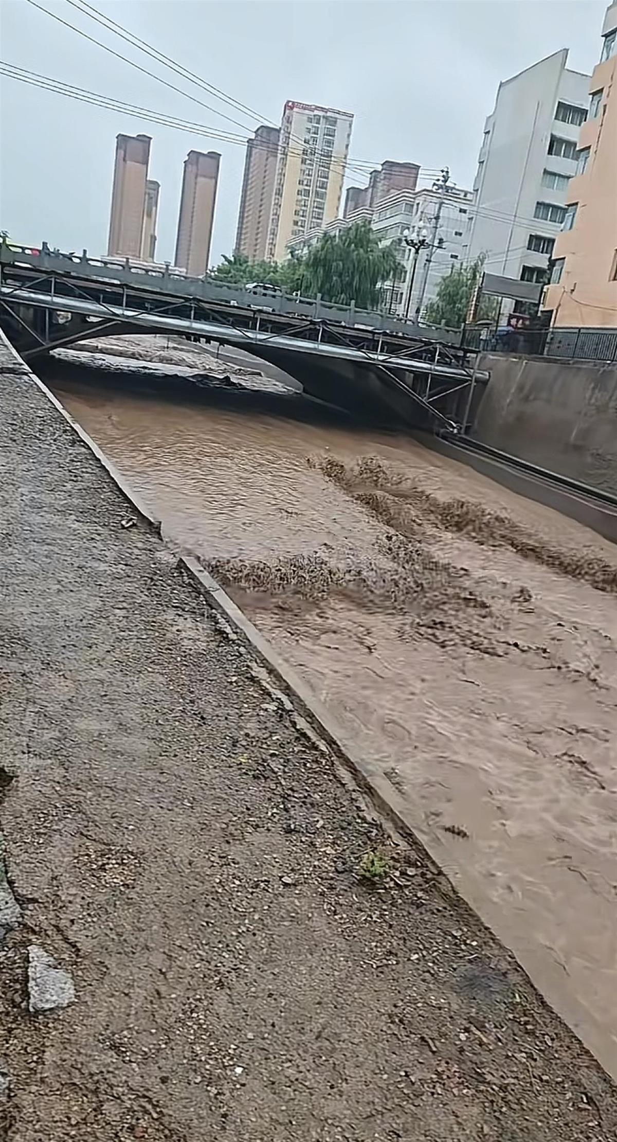 榆中縣因暴雨河流水位上漲