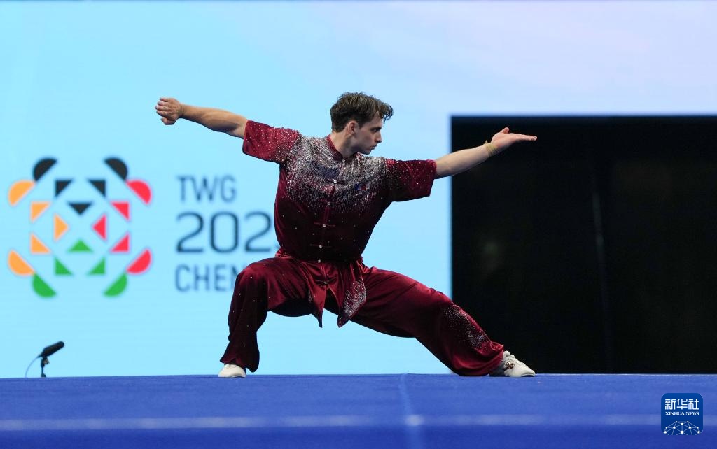 當日,2025年成都世運會男子長拳-刀術-棍術決賽在成都舉行。