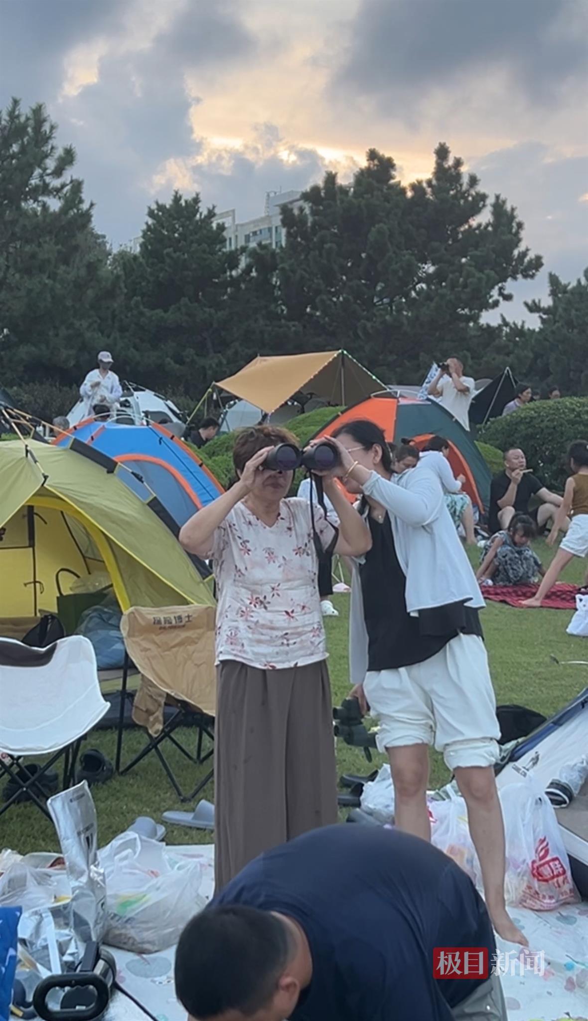 在海岸邊,游客早已扎下一個接一個帳篷,綿延百余米。極目記者注意到,許多游客攜老帶幼,還帶來蜜雪冰城、水果和各類零食,在期待火箭發射的同時,欣賞海景、大快朵頤,度過難忘一夜。還有游客帶來雙筒望遠鏡,興致勃勃地看向海面。