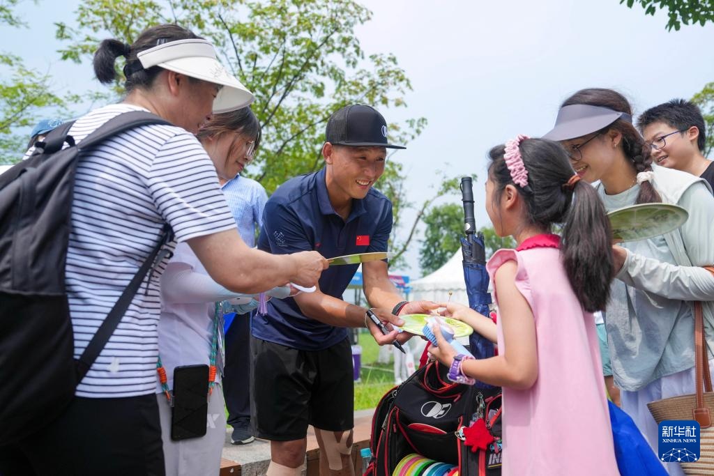 8月8日,中國選手趙辰菲(左三)在賽后為小朋友簽名。