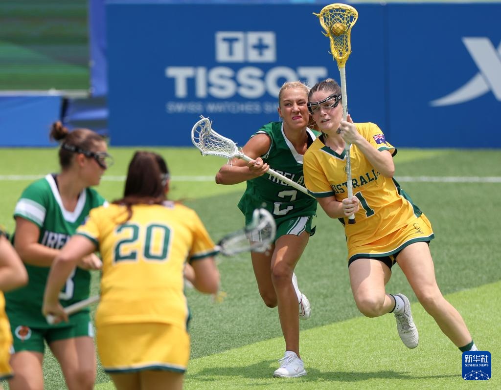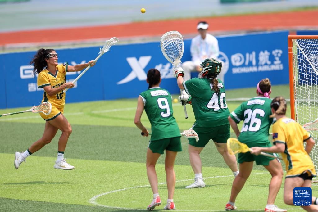 當日,在成都七中東部學校田徑場舉行的2025年成都世運會女子棍網球B組預賽中,澳大利亞隊18比7戰勝愛爾蘭隊。