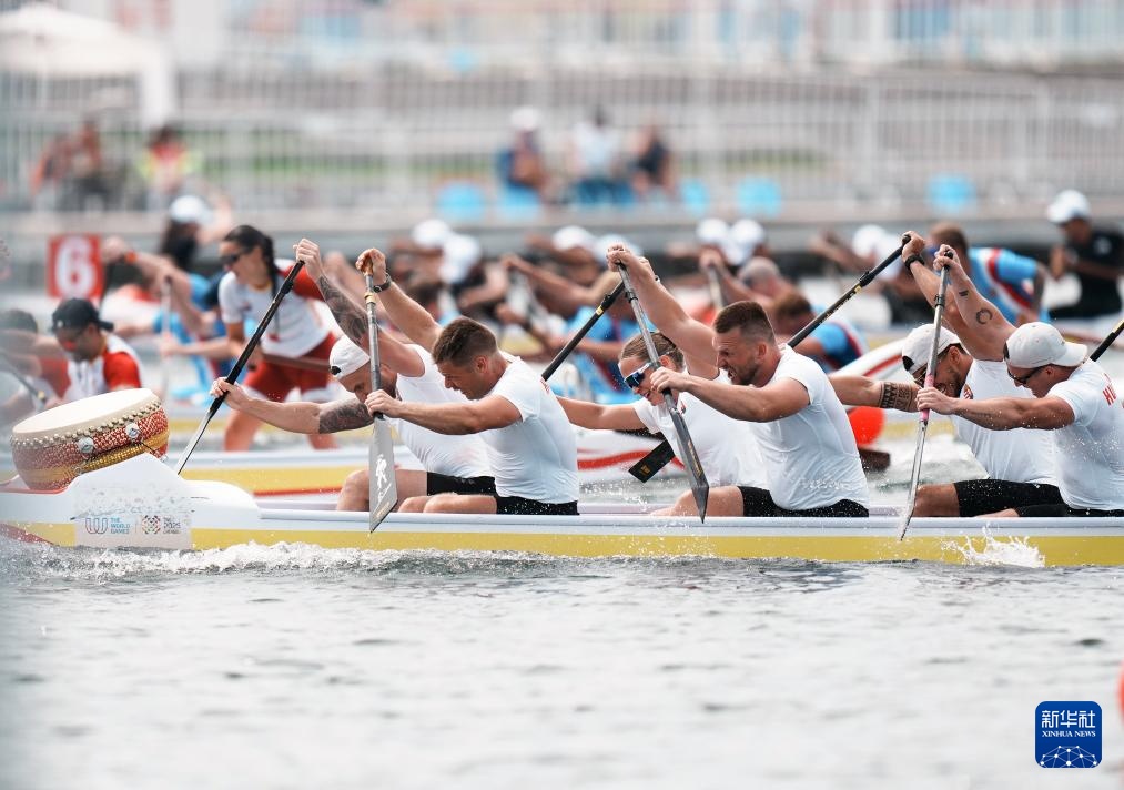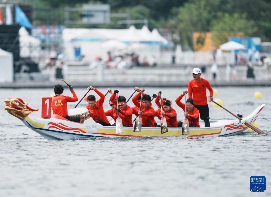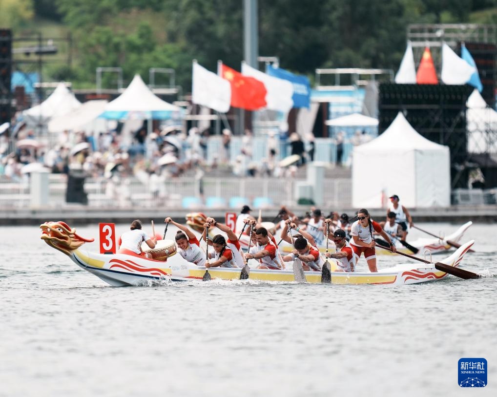 當日,2025年成都世運會龍舟8人座公開組500米半決賽在成都市興隆湖湖濱賽場舉行。